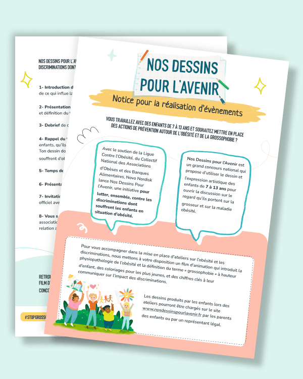 Nos Dessins pour l’Avenir est un concours de dessin organisé à l’occasion de la Journée Mondiale de l’obésité 2024. Du 4 mars au 31 décembre 2024, ce grand concours national a permis aux enfants âgés de 7 à 13 ans, d’utiliser le dessin et l’expression artistique pour ouvrir la discussion sur le regard qu’ils portent sur la grosseur et sur la maladie obésité.